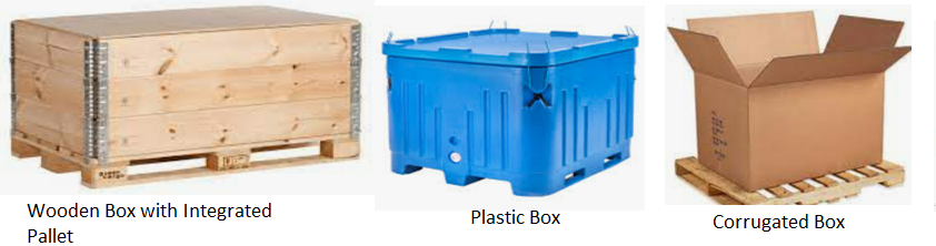 -Select Corrugated Box, Plastic Box, Wooden Box with Integrated Pallet.